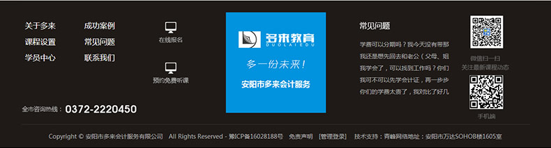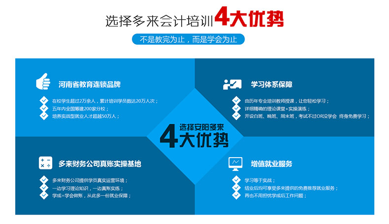 安陽(yáng)市多來(lái)會(huì)計(jì)服務(wù)有限公司是由河南多來(lái)教育集團(tuán)和河南因心財(cái)務(wù)之家領(lǐng)導(dǎo)下首創(chuàng)一站式會(huì)計(jì)培訓(xùn)、企業(yè)注冊(cè)、代理記賬、商標(biāo)注冊(cè)、品牌策劃營(yíng)銷等于一體的多元化企業(yè)會(huì)計(jì)服務(wù)平臺(tái)。致力于為中小型企業(yè)服務(wù),資源整合,培訓(xùn)出會(huì)計(jì)人才,為中原崛起助力、打造河南具影響力的企業(yè)服務(wù)平臺(tái)。