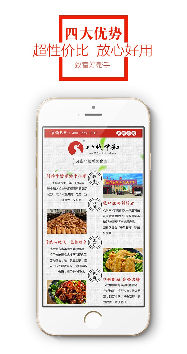 本公司生產(chǎn)道口燒雞系列產(chǎn)品,及生產(chǎn)、加工、營銷、連鎖、加盟于一體的全國性連鎖股份制民營企業(yè)。已獲得國家食品生產(chǎn)許可證,通過ISO9001國際質(zhì)量管理體系認證。